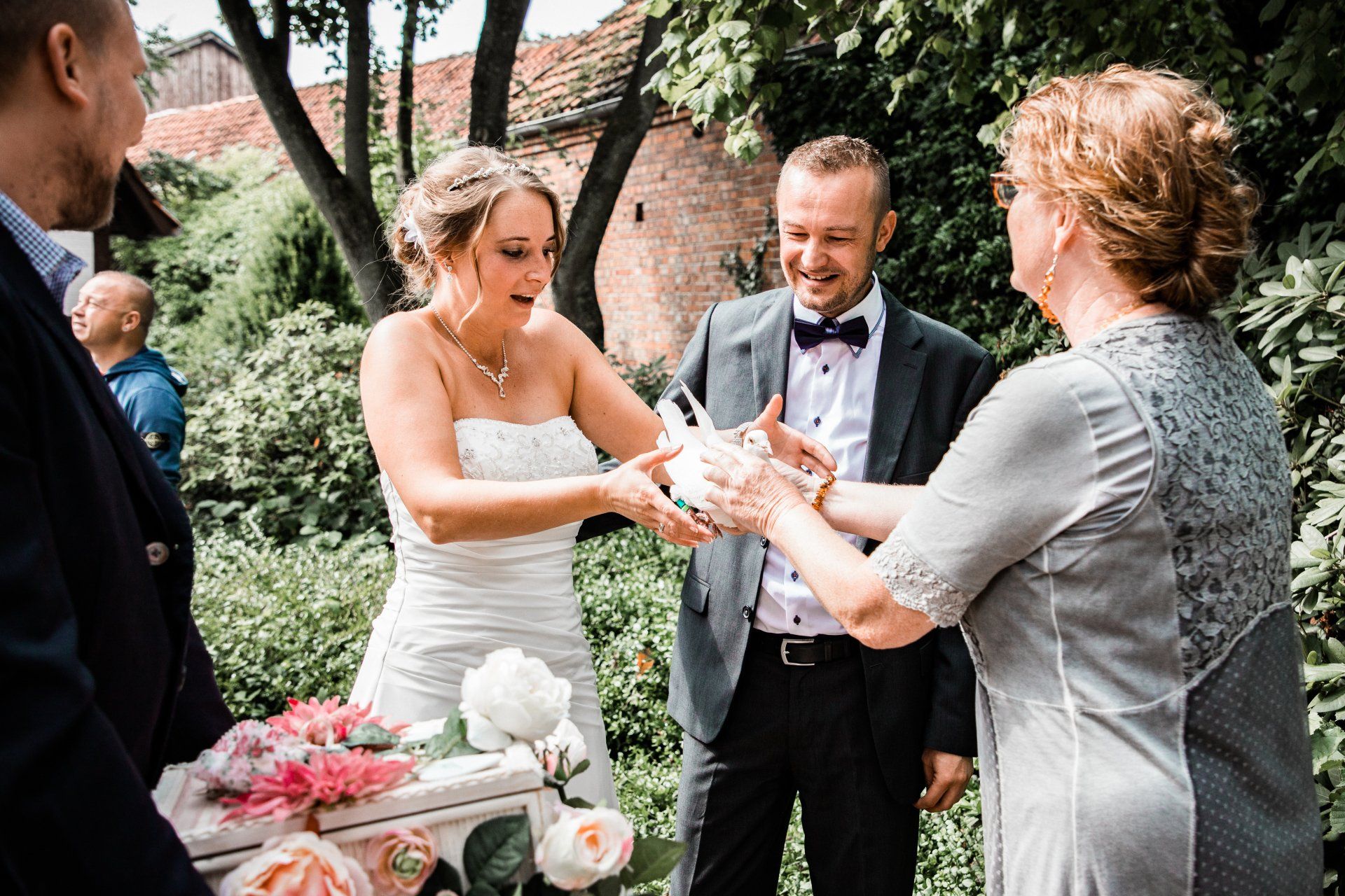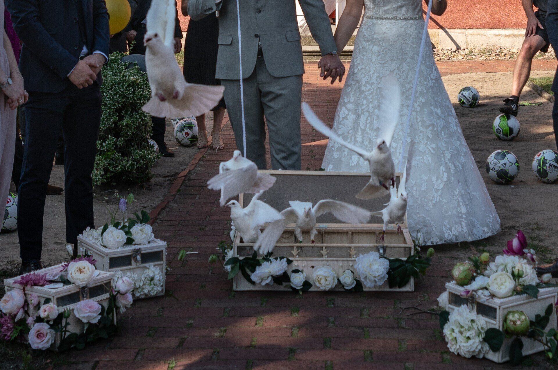 Grundsätzlich, kommen wir mit unseren weißen Tauben zu einem Event. Dort sind wir bis ihr die Tauben aufgelassen habt dabei.
